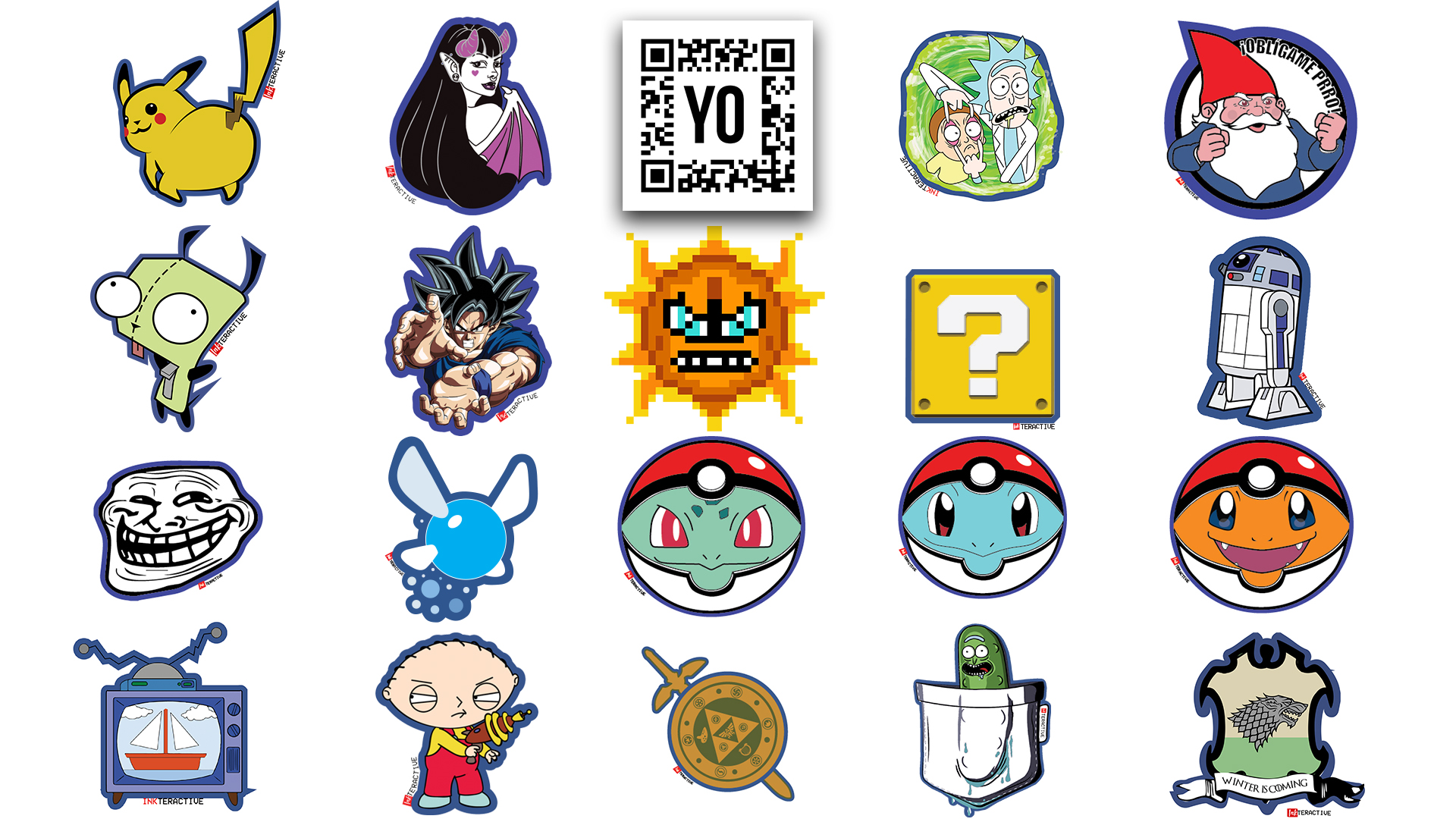 Se crearon 20 diferentes stickers diferentes, algunos podían ser adheribles a la piel con papel especial y cada uno con su correspondiente animación, todos ellos con base en íconos de la cultura digital, los usuarios al comprar un sticker se les instalaba en sus dispositivos una aplicación con la cual podían detectar el Sticker que ellos seleccionaran. Adicionalmente se crearon stickers personalizables a los que se les podían agregar ondas de audio y escaneos 3D de los usuarios con animaciones de movimientos preestablecidas en Mixamo.